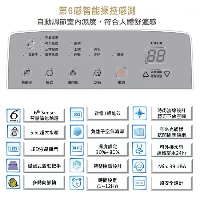 四段風速選擇,加上定時功能(最長可達12小時),讓您輕鬆除濕